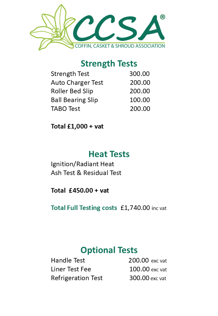 In order to ensure coffins used for cremation are safe and ready to use, these tests have been carried out by a UKAS accredited and independent testing house in accordance with the Coffin and Casket Testing Protocol developed between 2013-2018.